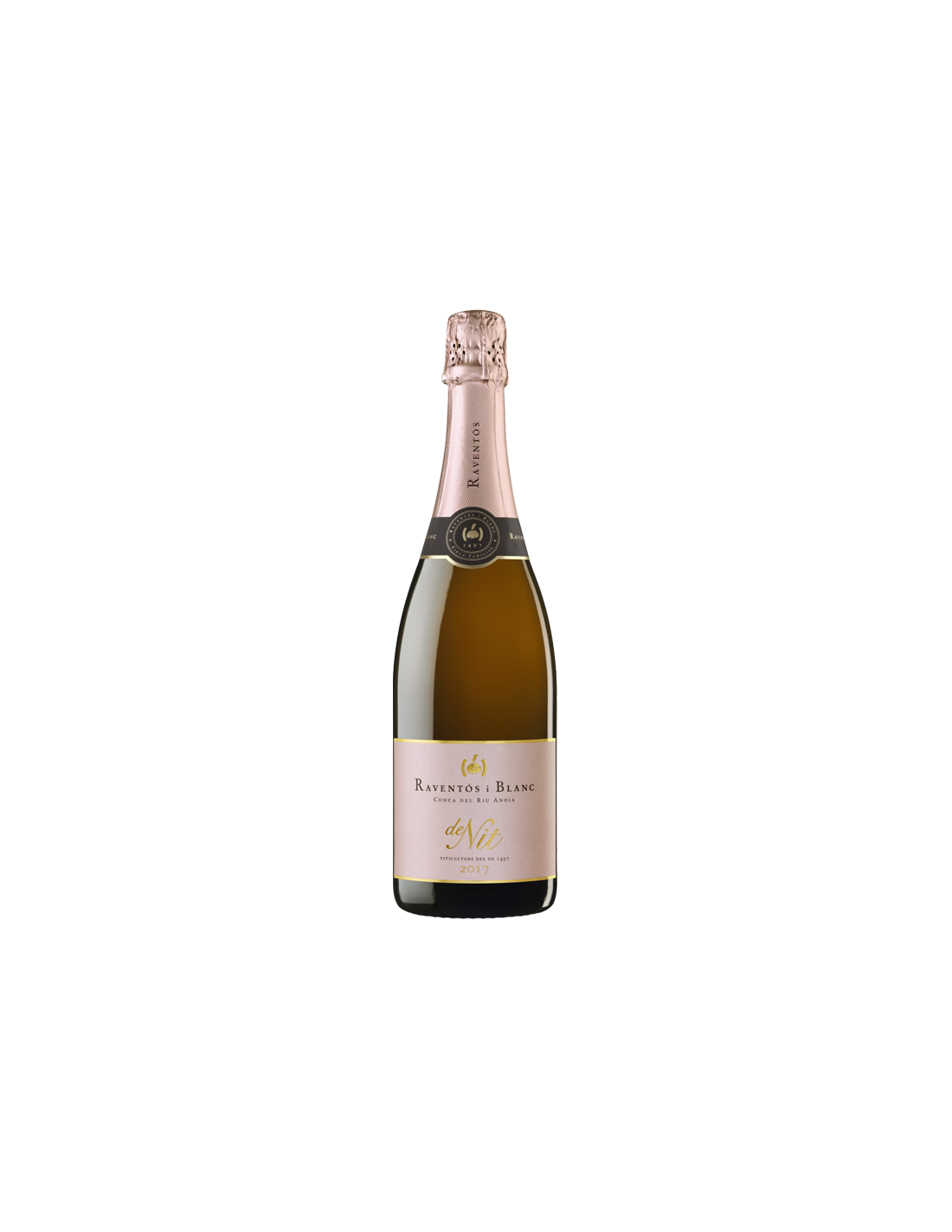 De Nit 2023 combina Xarel·lo, Macabeo, Parellada y Monastrell en un espumoso rosado ecológico. Fermentado con levaduras autóctonas y criado 18 meses sobre lías. Extra Brut, 12,15% vol., burbuja fina, acidez fresca y expresión auténtica del terroir de Conca del Riu Anoia.