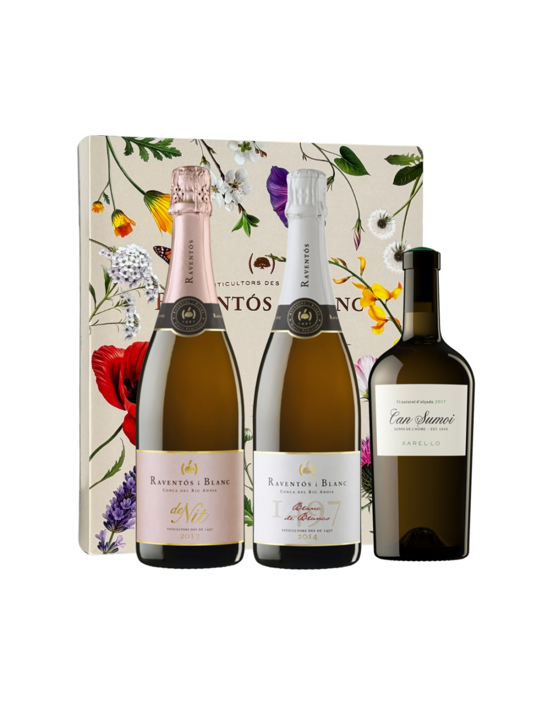 Estuche de 2 botellas de Raventós i Blanc (1 De Nit + 1 Blanc de Blancs) y una botella Can Sumoi de Xarel-lo