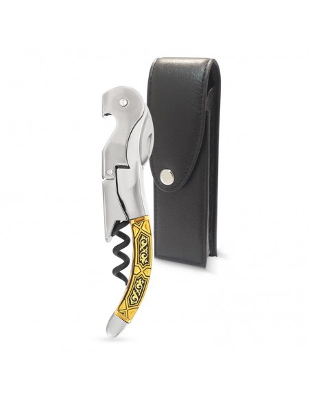 El sacacorchos damasquinado es una obra de arte de la joyería con más de 1000 años de tradición. En el mango de este sacacorchos se han añadido unas cachas realizadas por maestros artesanos que dedican muchas horas y paciencia a la creación de maravillosos diseños de orfebrería con sus manos expertas y la única ayuda de un pequeño punzón para sacar a relucir el oro