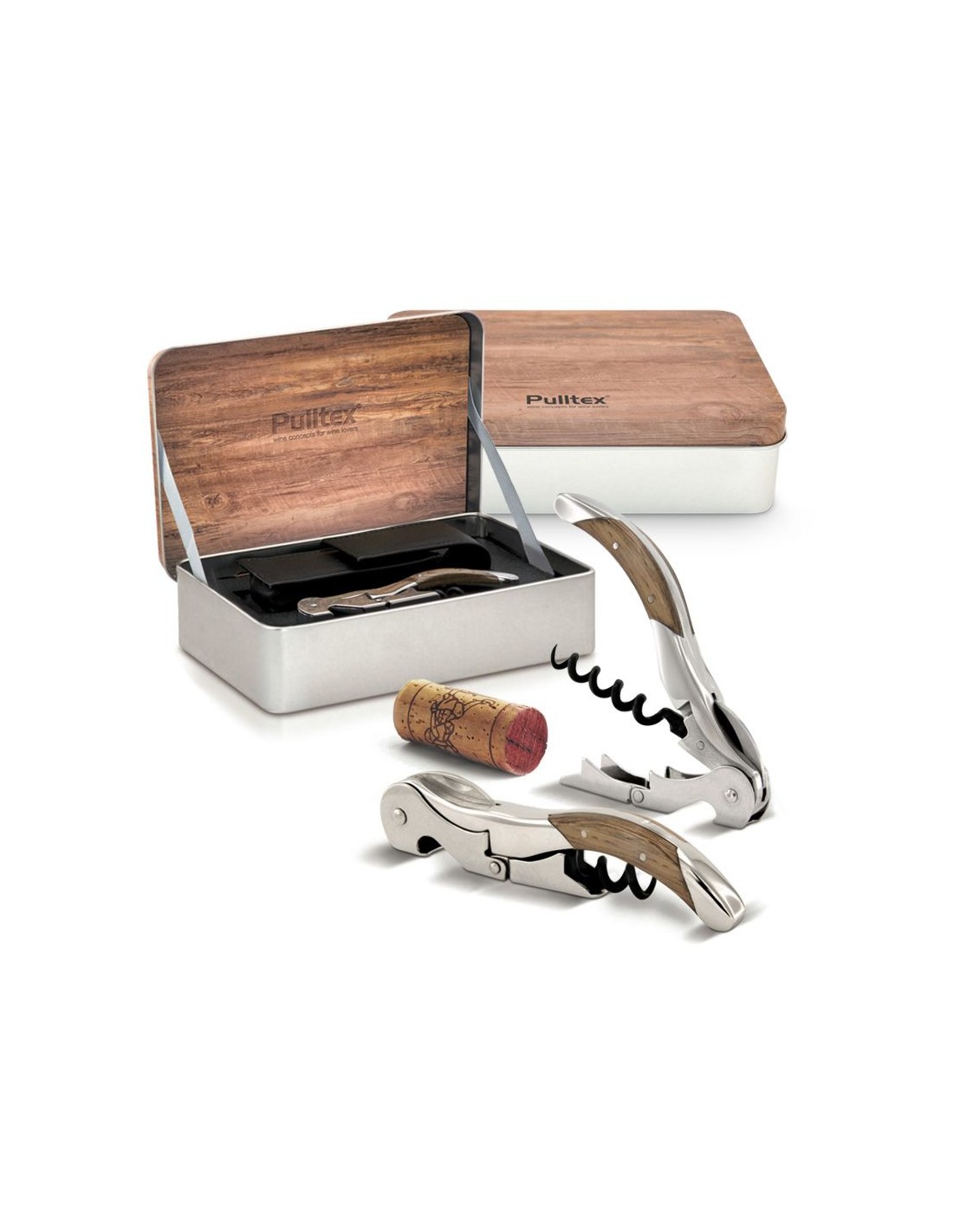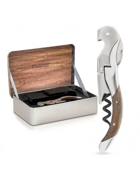 La doble palanca del sacacorchos Toledo ha revolucionado el descorche del vino. Permite extraer sin esfuerzo los corchos en dos tiempos sin romperlos ni dañarlos. Acabado artesanal con incrustaciones de madera natural.