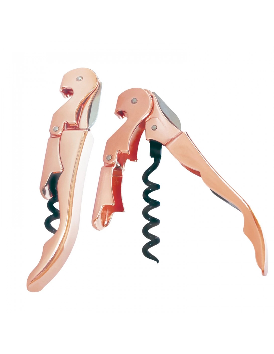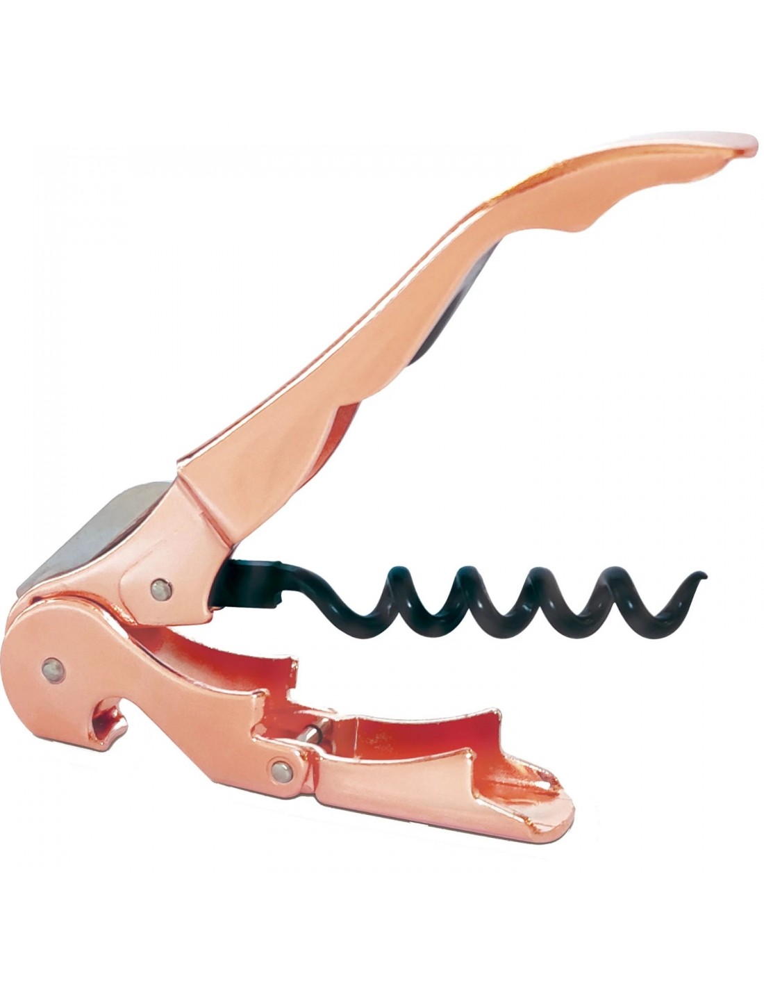 Elegante abridor de botellas en acabado rosa, sistema de doble palanca para extracción sin esfuerzo y diseño profesional para brindar con estilo.