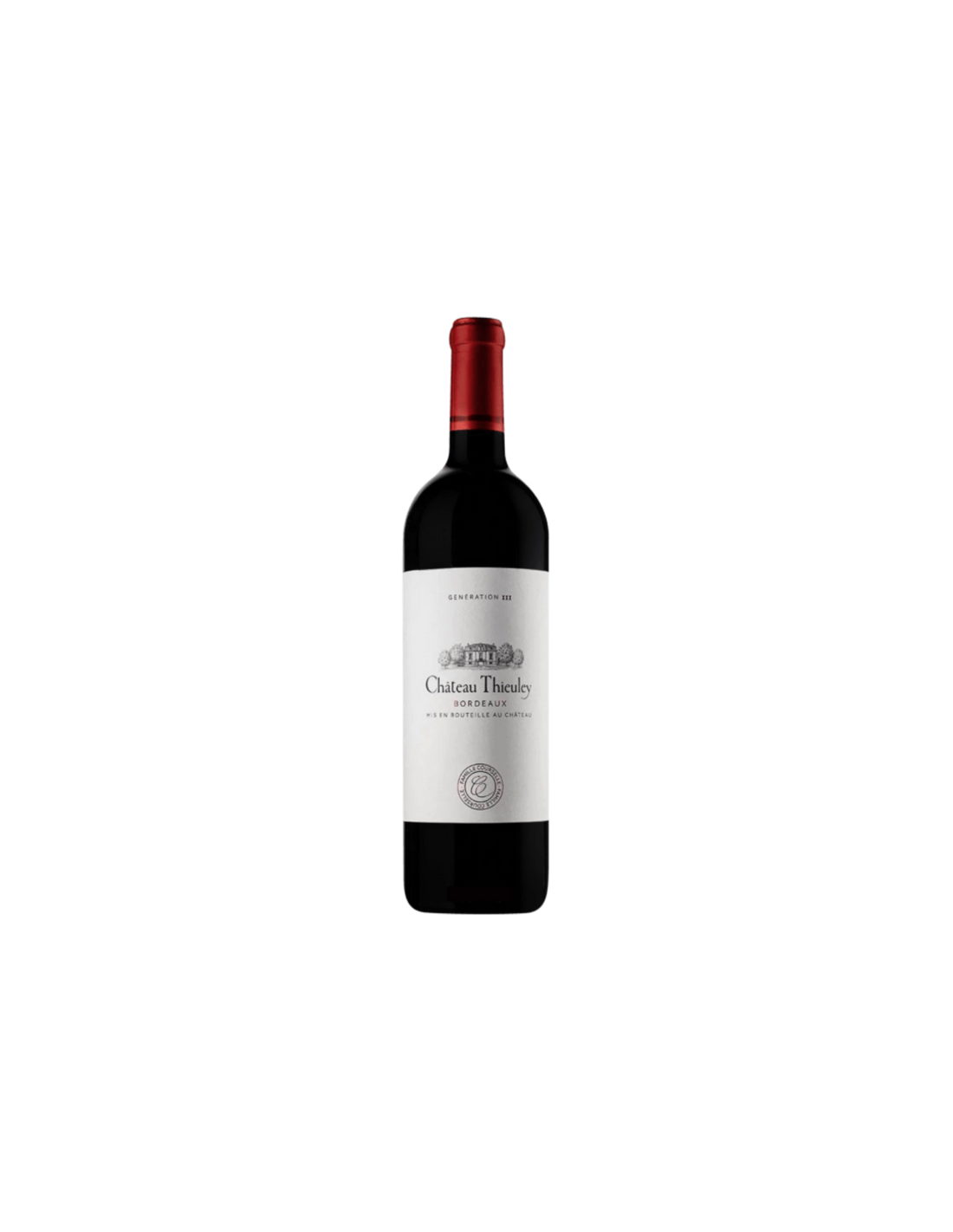 El Château Thieuley Génération III Bordeaux Rouge es un ensamblaje bordelés (Merlot, Cabernet Sauvignon, Cabernet Franc, Petit Verdot) con crianza parcial en barrica, aromas a frutos negros, cacao y especias, buena estructura y taninos firmes. Contiene sulfitos.