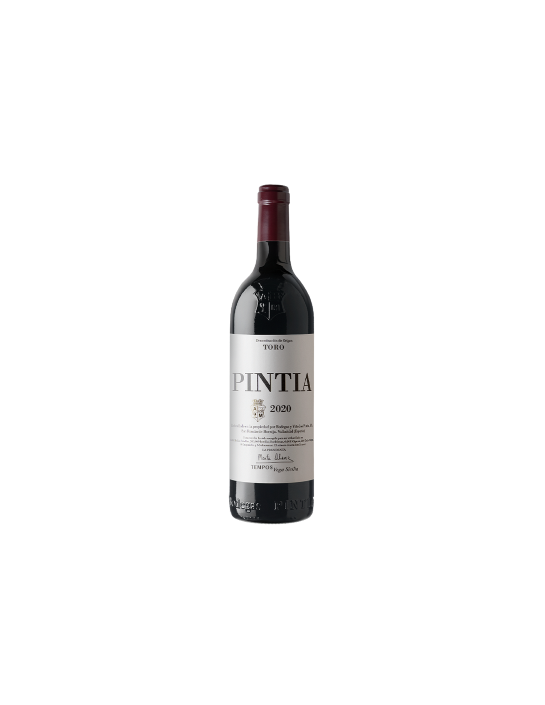 El Pintia 2020 de Vega Sicilia (100 % Tinta de Toro), crianza de 11 meses en barricas y vasijas de barro + 30 meses en botella, presenta aromas a fruta negra, tostados y notas florales, con cuerpo firme, taninos maduros y larga persistencia.