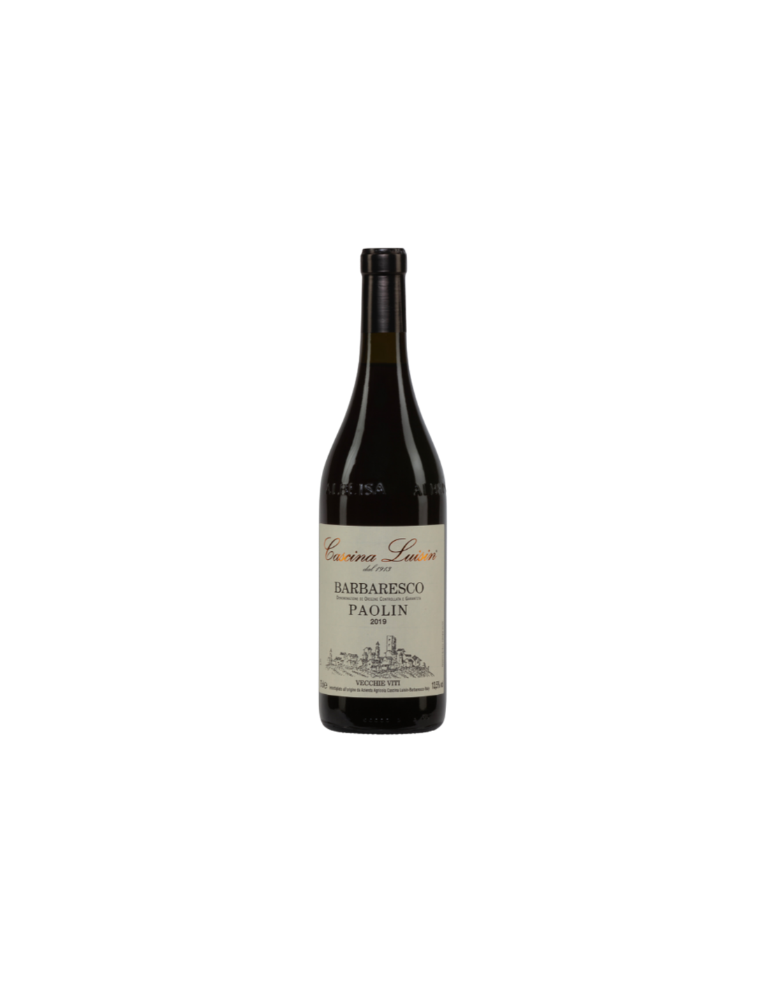 Vino tinto DOCG de Barbaresco elaborado por Cascina Luisin con Nebbiolo del viñedo Paolin. Fermentación tradicional y crianza en grandes botti de roble que aportan estructura, elegancia y el perfil aromático típico del Piamonte.