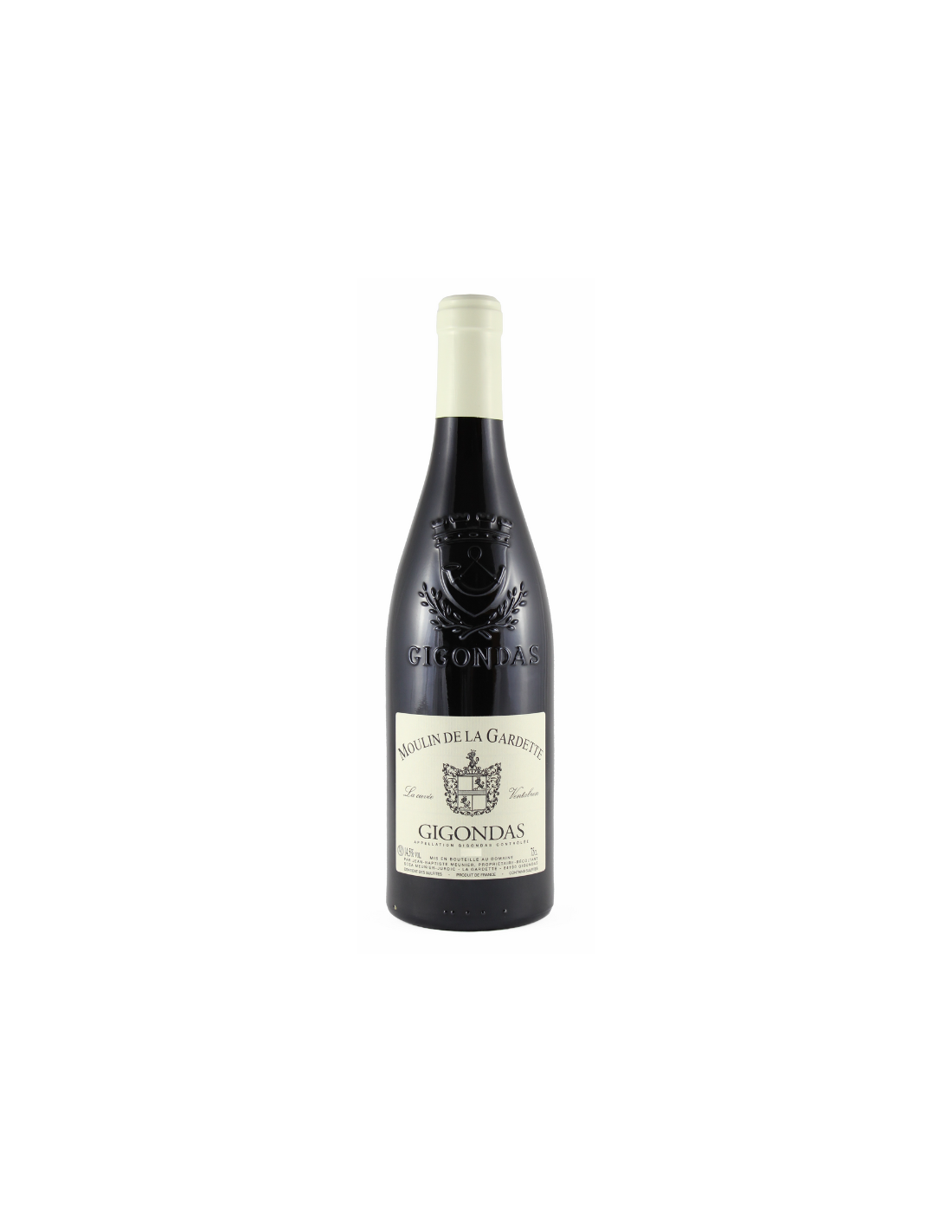 Vino tinto de Gigondas AOC elaborado por Moulin de la Gardette principalmente con Garnacha y variedades tradicionales del Ródano. Fermentación tradicional y crianza en grandes fudres de roble que preservan fruta, frescura y complejidad.